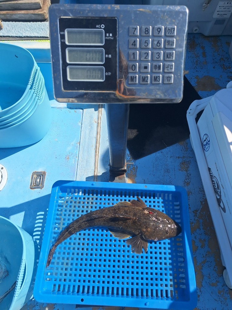 本命ヒラメは、0.7キロ~1.8キロを4枚。他にマゴチ0.3キロ~1.1キロを4本。トラフグ2匹最大2.2キロ。他にホウボウ、エソ、シマフグでした。